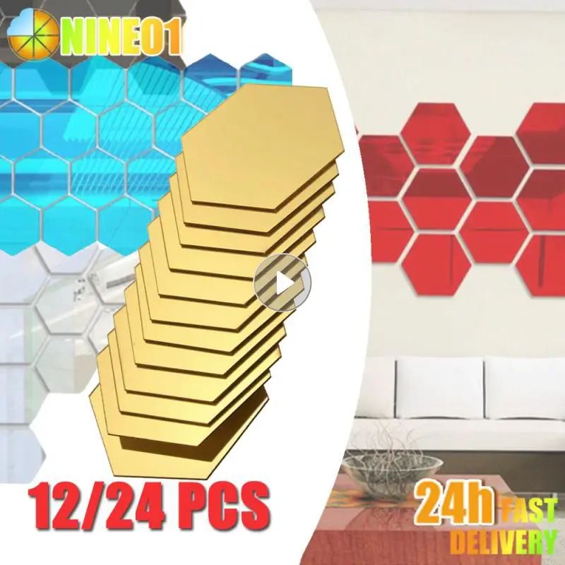 24/12pcs Mirror Wall Sticker Hexagon Wall Art Sticker DIY Household Decorative Tiles Sticker SELF adhesive Decorative Mirrors