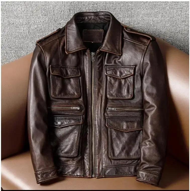 .Brand New Classic M65 Man cowhide Jacket,genuine Leather hunting coat.Vintage leather clothes.plus size,quality