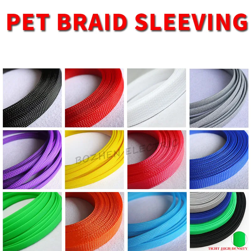5MColorful PET Expandable Cable Sleeve 3 ~ 16mm Tight Braided High Density Hardness Insulate Line Protect Wire Wrap Gland Sheath