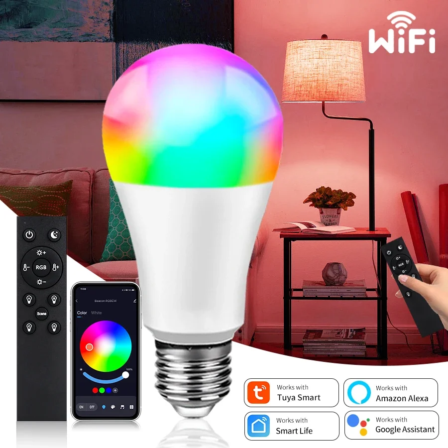 Tuya E27 Led Bulb Bluetooth WiFi Smart Led Lamp App Control 15W RGB C+W Led Light Bulbs Works With Amazon Alexa Google Assistant