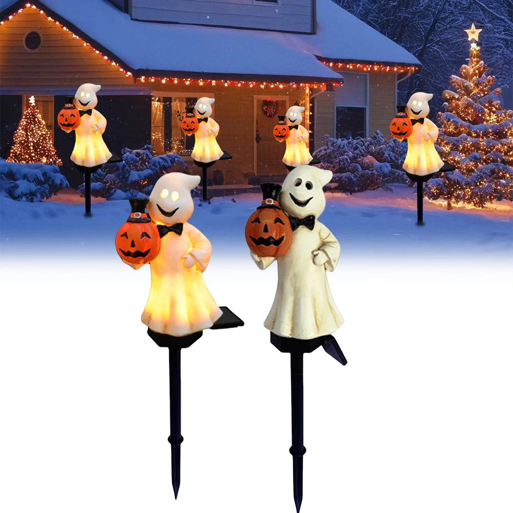 Halloween Solar Ghosts Pathway Light Resin LED White Ghost Light Anto On & Off Ghost Ground Stake Lamp for Outdoor Garden Decor