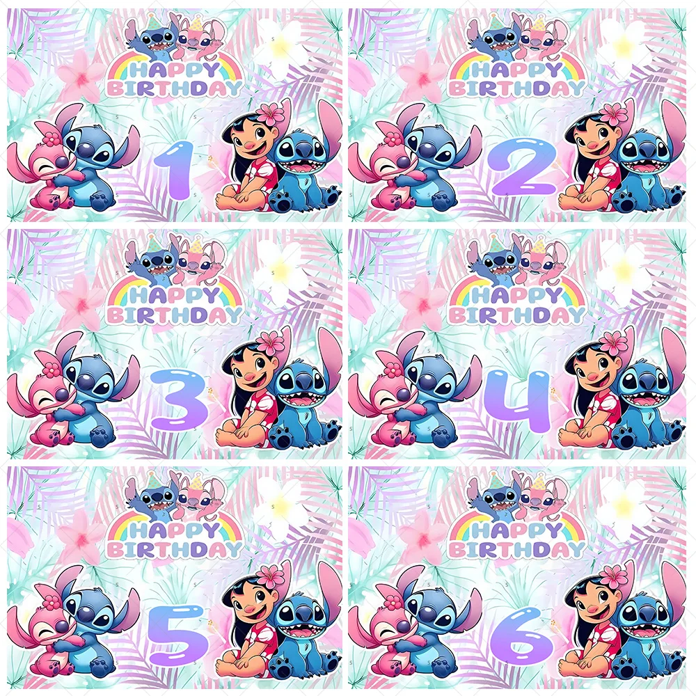 Iconic Brand Stitch Happy Birthday Background Banner Kids Birthday Party Decorations Photography Backdrop Supplies Photo Shoot Prop