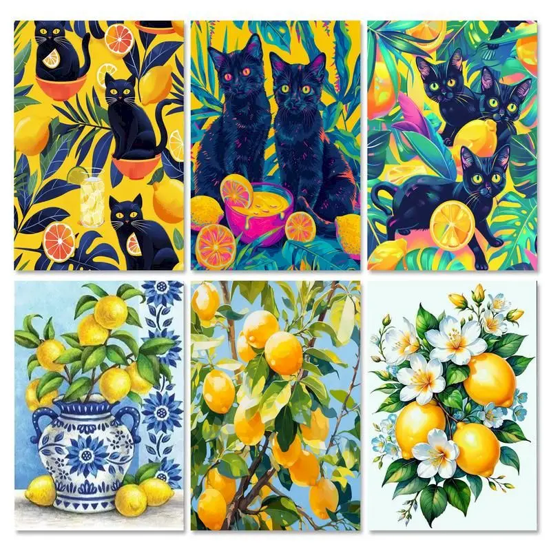• GATYZTORY Acrylic Painting By Numbers On Canvas Paint Kit Lemon Black Cat Animal Coloring On Numbers Handpainted Wall Decor Gift