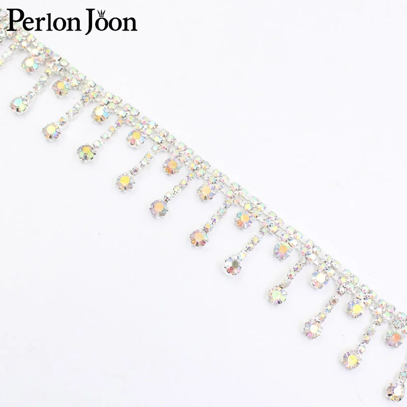 1 Yard Short tassel Pendant rhinestones trim fringe crystal metal chain for dress,bag,shoes accessories ML004