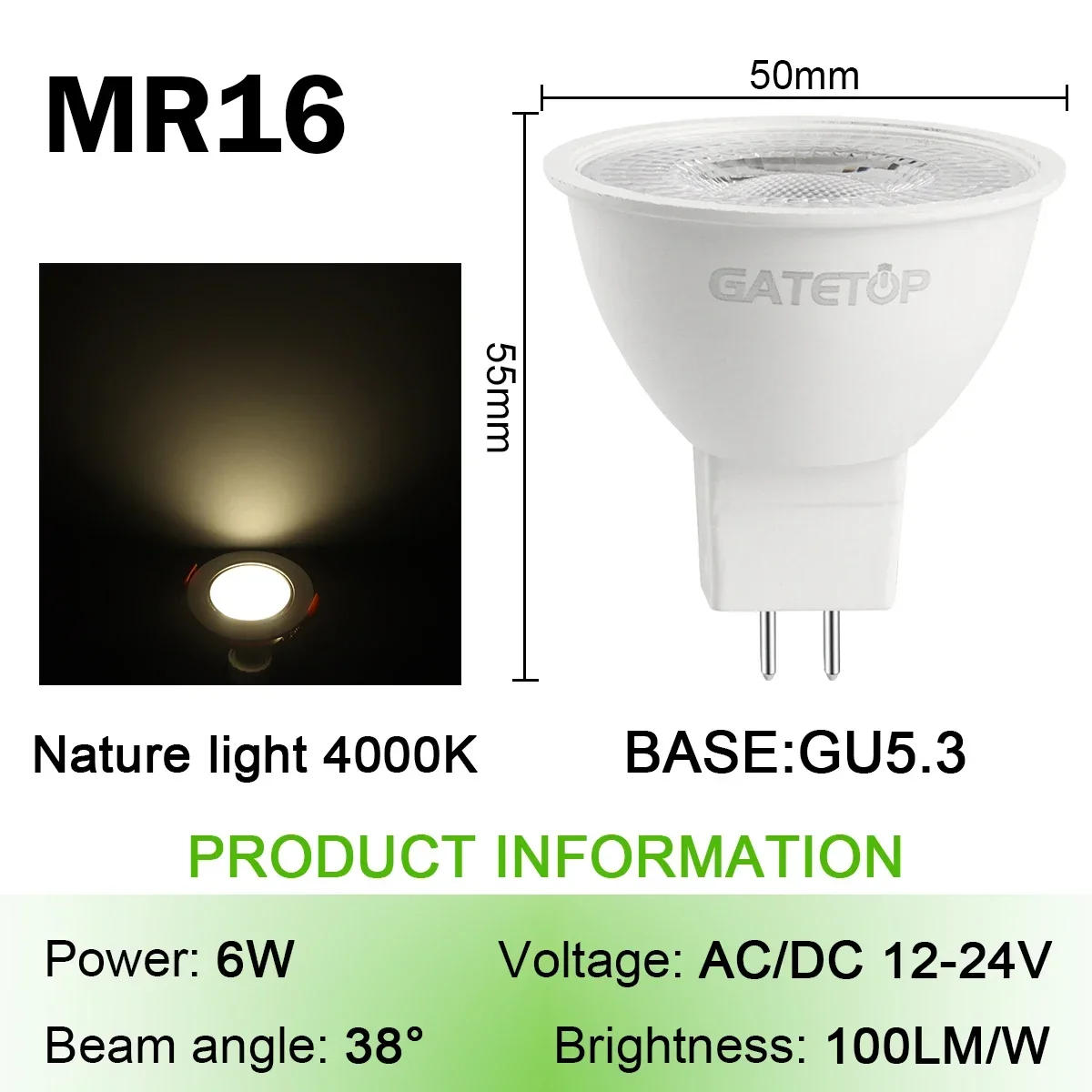 10-50pcs Low pressure MR16 6W LED Spotlight Bulb DC 12V 24V Ceiling Warm light Angle Adjustable Rotating Indoor Lighting