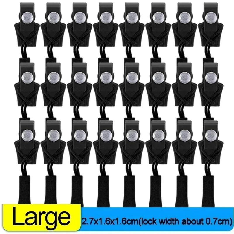 Specification *-Material: Alloy + plastic + nylon *-Size: Small length : 2*1*1(lock width about 0) Medium size : 2*1*1(lock width about 0) Large Size : 2*1*1(lock width about 0) *-Color: Black *-Quantity: 1/5/10/20/50/100PCS