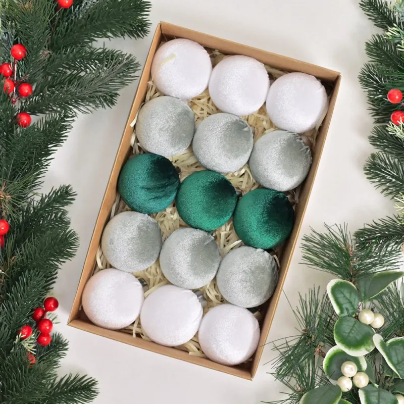 15ct Christmas Balls Tree Ornaments Flocked Christmas Tree Decorations Set Velvet Hanging Balls for Holiday Xmas Tree Decor