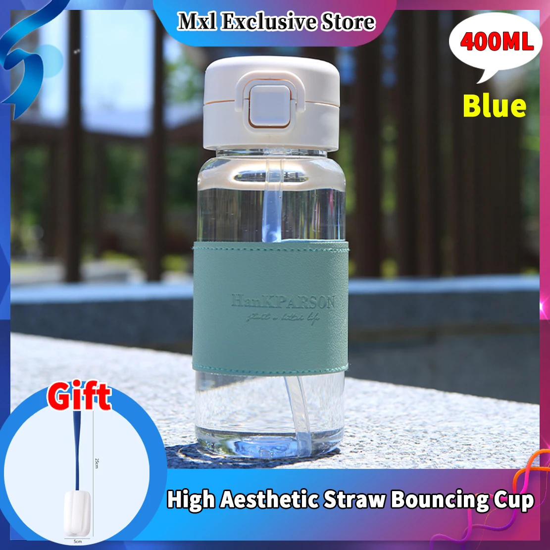 1PcS Creative Water Bottle with Straw Portable Cute Plastic Drinking Bottle Leak-proof Drinkware for Drinking Milk Coffee Tea