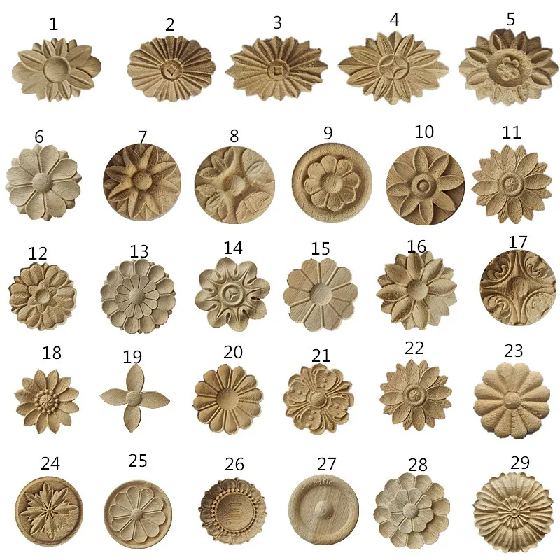 1pcsWood Floral Appliques for Furniture Antique Onlays Moulding Home Decor Carving Decoration Wall Wood Decal Vintage Figurines
