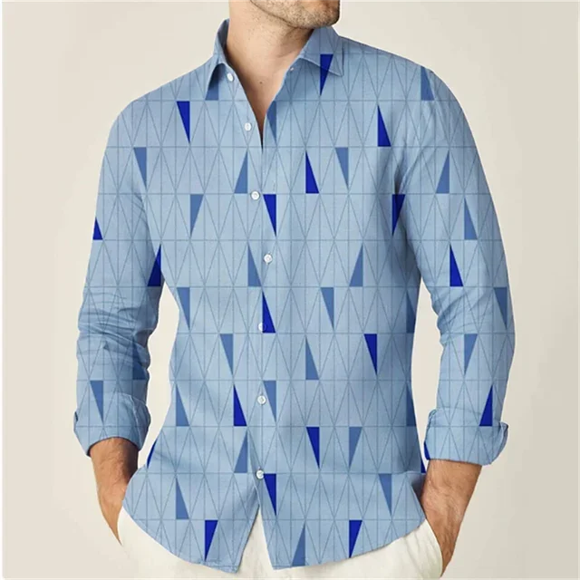 2023 Men's Shirts 9 Colors Shirt Pattern Geometric Print Blue Outdoor Street Long Sleeve Fashion Streetwear Designer Casual