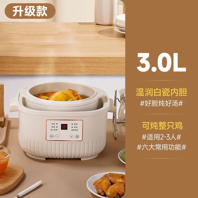 220V Automatic Ceramic Stew Pot Electric Slow Cooker for Soup Porridge Baby Food Double Boiler Home Use
