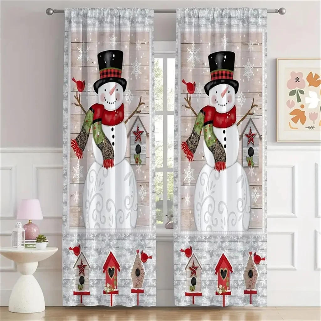 2pcs Classic Christmas Lantern Trees Elk Print Curtains Hand Washable,Hookless Rod Pocket For Living room Bedroom Kitchen Office