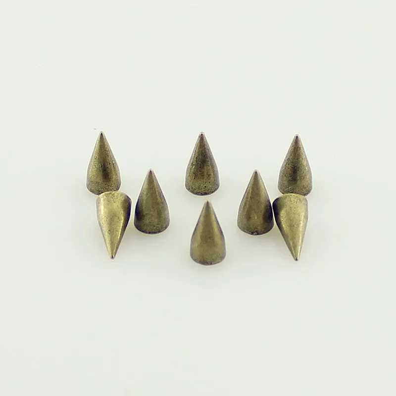 Material:zinc alloy Size:7*14mm(diameter is 7mm,height is 14mm) quantity:30sets(30pcs of spikes and 30pcs of screws) Color:14 colours and painted Design:screwback