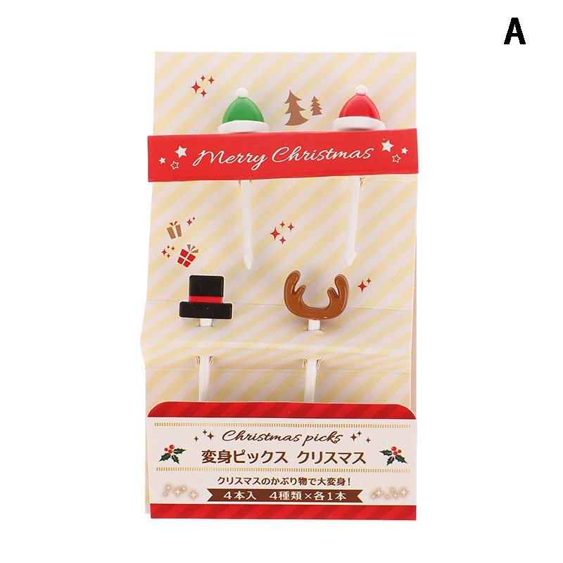 4/6 Pcs Christmas Fruit Fork Creative Lunch Bento Accessories Festive Party Decoration Cute Fruit Fork Cupcake Insert Toothpicks
