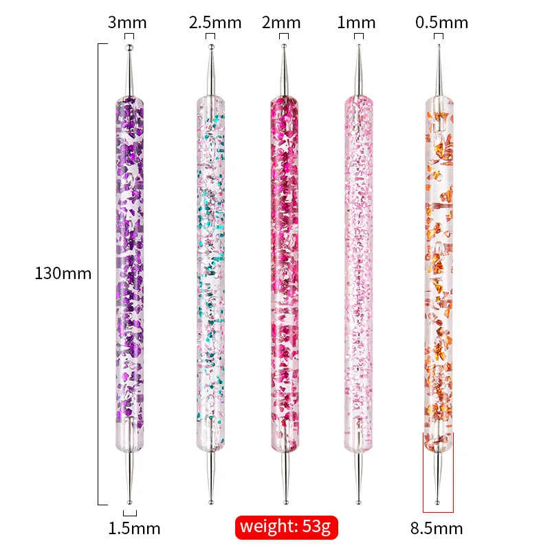 5pcs Dual-ended Nail Art Dotting Tool With Rhinestones Handle Gems Pens UV Gel Liner Flower Pattern Drawing Painting Brush Kits
