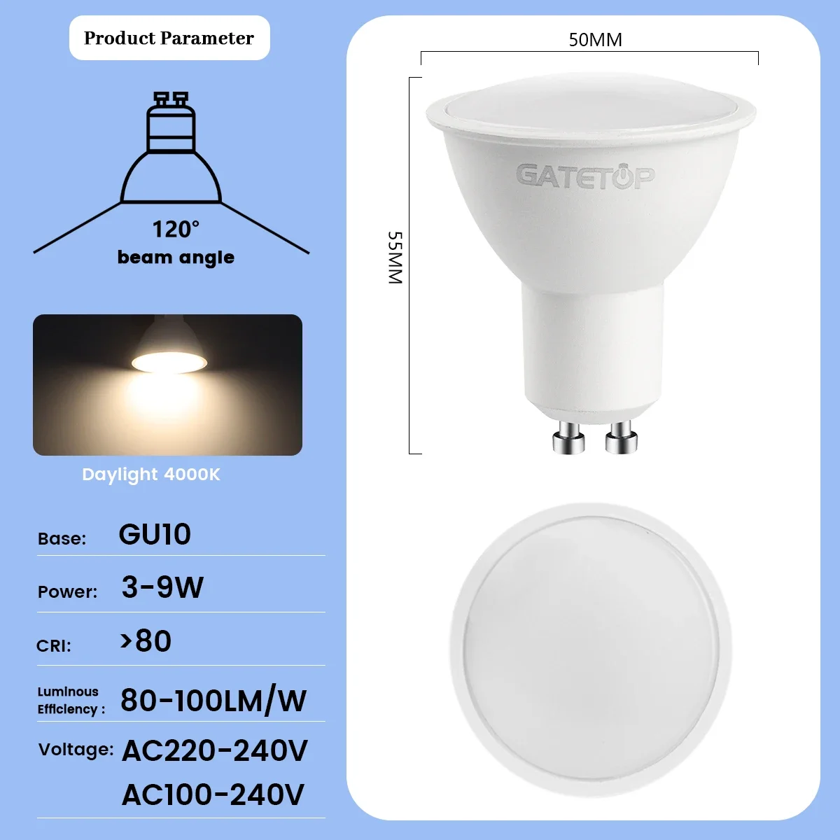 5pcs LED Spotlight GU10 Naturelight 5W 6W 7W 8W 9W LED Bulb GU10 AC220V 120V Replace 50w Halogen Lamp for Home Living Room