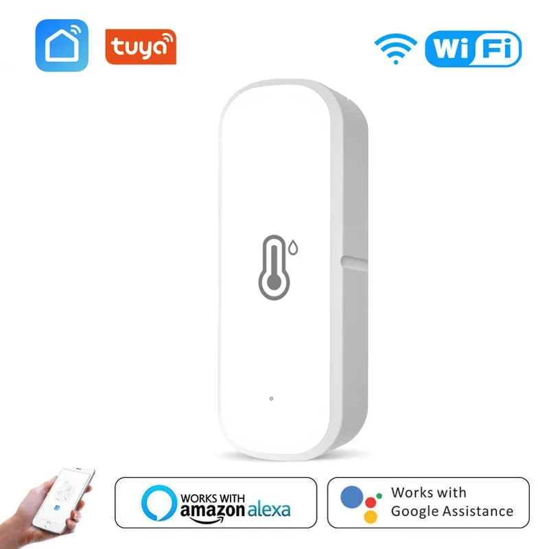 Aubess Tuya WiFi/ZigBee Temperature Humidity Sensor Smart Life Remote Monitor For Smart Home Work via Alexa Google AssistantDescription: Material : ABS Size: 70*24*19mm Product Weight: 30g Battery:LR03-1/AAA*2Wi-Fi frequency: 2 IEEE 802 b/g/n Temperature Measure Range: -20°C ~ 60°C Humidity Measure Range: 0% RH ~ 100%RH Temperature Measure Accuracy: ±1°C Humidity Measure Accuracy: ±5%RHSpecifications: 【Intelligent Linkage】When the ambient surroundings change, you are able to do clever linkage. For example, the air conditioner can be on and turn to specified temperature robotically when the room temperature surpass 28℃. And the humidifier will spray when the humidity is less than 20% RH.【Share devices】You can share your added devices together with your relations members, so they can also video display the ambient environment.【Temperature Unit Selection in APP】You can want ℃ or ℉ as the temperature unit by way of means of app.【 Third-party Voice Control】Works with amazon alexa, google assistant.【Low battery alarm】The battery level could be monitored.【Temperature and humidity changes.】Temperature and humidity substitute curve, historical data.【Wall-mounted, clean to install】Package Included: 1*Sensor1*Instruction1*Back sticky label