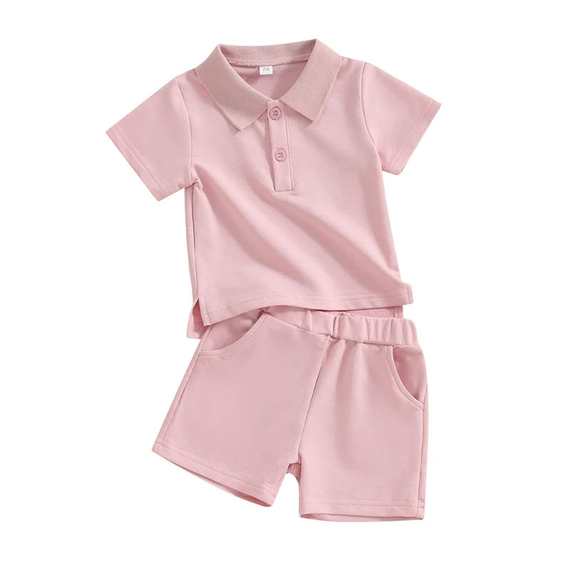 Baby Shorts Set Short Sleeve Turn-down Collar T-shirt with Shorts Solid 2-piece Outfit