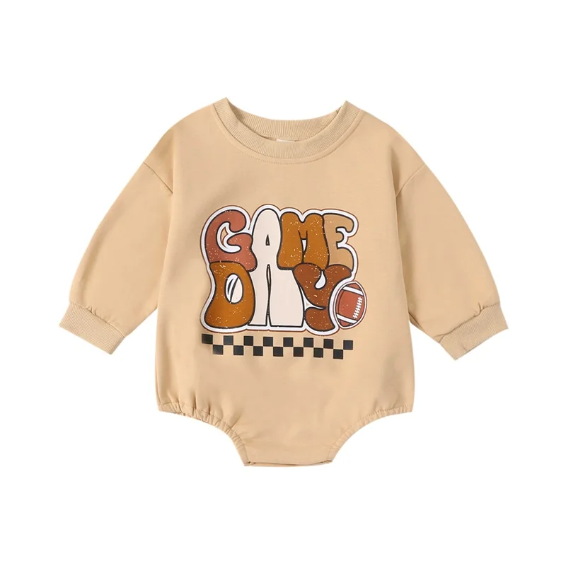 Baby Sweatshirt Romper Long Sleeve Round Neck Letter Print Bodysuit Infant Warm Clothes