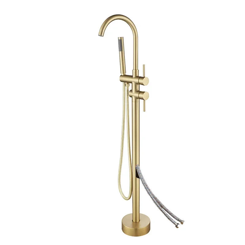 Tuqiu Bathroom Bathtub Faucet + Handheld Shower Free Standing Brushed Gold Luxury BathTub Mixer Taps Floor Mounted