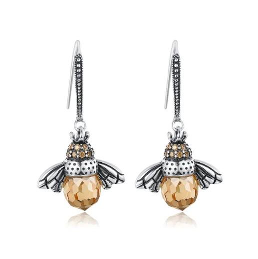 BISAER 925 Sterling Silver Bee Drop Earrings with Yellow Zircon - Luxury Fine Jewelry for Women (ECE149)