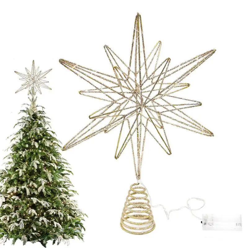 Christmas Tree Toppers Star with LED String Lights Ornaments Creative LED Lights Glitter Xmas Tree Decoration for Party Decor