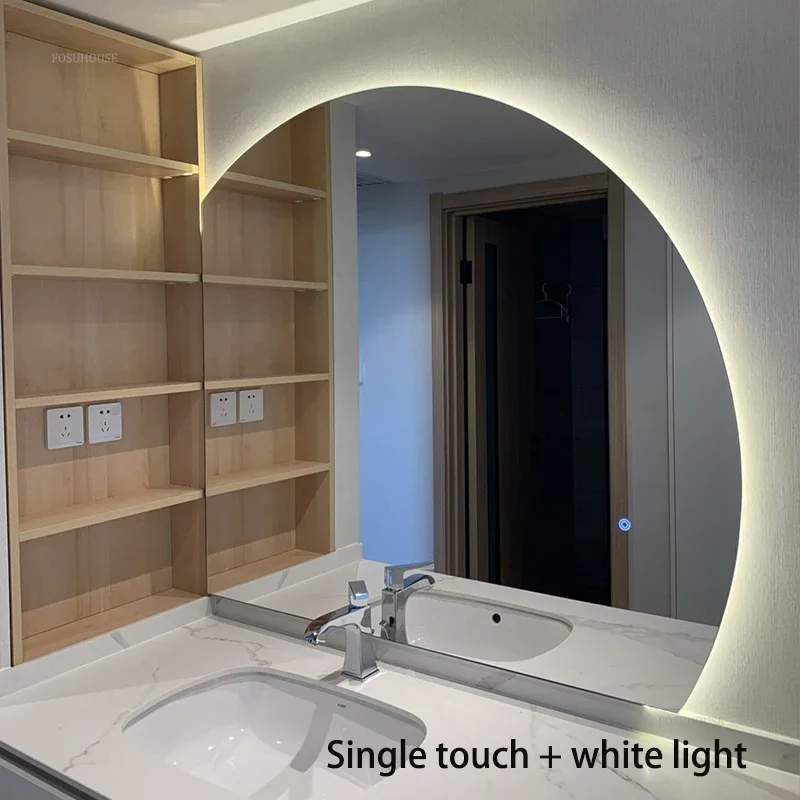 Creative Semicircular Mirror for Bathroom Large Size Touch Screen LED Light Bath Mirrors Modern Simple Glass Mirrors for Hotel