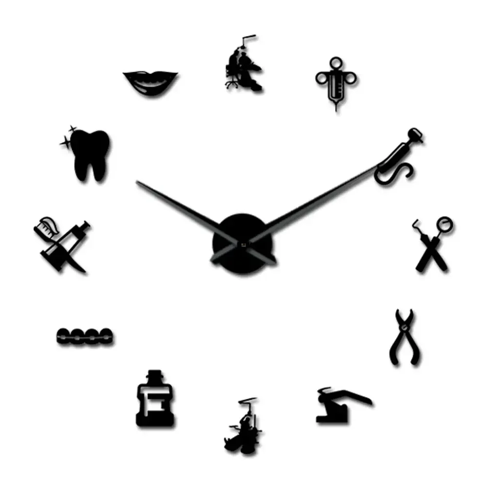 DIY Art Dentist Giant Wall Clock Dental Doctor Oversized Wall Clock Big Needle Mirror Dentist Office Decor Dentist Gift Doctor