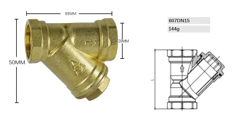 DN15-DN100 Brass Filter Y-shaped Valve Heating Pipe Thickened Double Inner Thread Water Pipe Joint