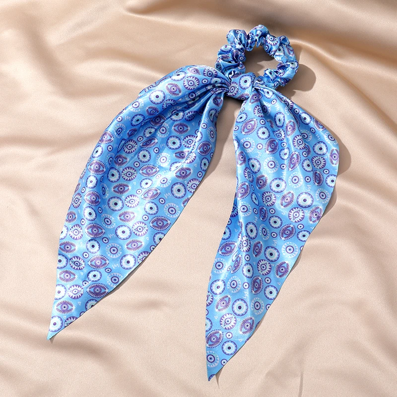 Evil Eye Hamsa Hand Flower Elastic Hair Bands Women Hair Rope Ties Fashion Blue Eye Fatima Ponytail Scarf Accessories Headwear