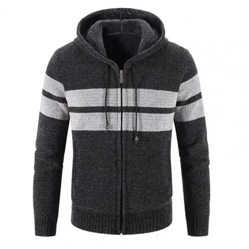 Fashion New Winter Cardigan Men Striped Hooded Sweater Jackets Casual s Thick Warm Knitting Sweatercoat Clothing