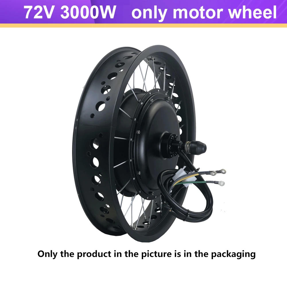 •20" 26" Fat Tire Ebike Rear Wheel 72V 3000W Rear Drive Hub Motor Electric Bicycle Conversion Kit for 4 Tire Snow Bicycle Bike Powerful 72V 3000W Motor Electric Bike Kit without Battery Fat Bike Snow Beach Ebike kit •Suitable for Beach Electric Bicycle/ Snow Bike/ Fat Bicycle rear wheel with 170mm/190mm frame dropout •Fit for 20/26 inch x4 fat tyre electrical coastline snow bicycle •72V 3000W brushless gearless hub motor with 55-70km/h height pace Please kindly observe that high velocity will be effected by means of many points within the genuine using •Dual Mode Controller: Motor works under Hall effect and non-Hall effect, enlarge lifestyles for electrical motorcycle •S900 LCD Display help battery skill indicator, brake status, pace display, day out distance display, motor energy and parameter environment demonstrate and many others •If the delivery handle is South Korea, please ship Customs ID to customer service, thank you! Notice: 1 Battery and charger are usually not included, please practice them before using 2 The electrical wheel is barely applicable to conventional bicycles, no longer for tricycles, tractors, and so on 3 Please visit automobile repair stores with standard enterprise license for modification 4 For safety reasons, it's not recommended to use in wet days and please put on a helmet before riding this electric bicycle for protection 5 Suitable battery variety and parameters: 72V lithium battery This package comes with all the pieces it is best to convert your bicycle to an E-bike EXCEPT battery and charger 3000W Motor : •Model:72V 3000W Fat Bike Rear Hub Motor •Wheel Diameter (Inch): 20"/26"---Optional •Construction:Gearless power •Rated Voltage (DCV): 72V •Rated Power (W): 3000 •Rated Speed(KM):55-70 •Rated Speed(rpm):579-596 •Torque(N): 91-101 •Fork size(mm):170/190 •Brake type:Disc brake160mm •Color: Black/Red/Green/Blue •Motor weight (kg): about 10 •Package weight (kg): about 15 •Matching controller (A): 50A •Magnet height: 45H •Number of magnet poles: forty six •Operating Temperature: -20-45℃ •Efficiency (%)≥ 80 •Noise Grade (dB): ≤55 •Waterproof:IP54 •Smoke test: ninety six •Installation: Rear •Certification: CE •Anti-corrosion grade: 96 JN-60A Controller : •Dimension :175*104*51mm •Waveform: Sine wave •Weight :1025g •Cable length :all about 13-18cm •Mosfets :18mosfets •Maximum recent :60±1A •Rated voltage :DC48V-72V •Speed set :1-4 •Rated recent :30A •Brake enter :Low-Level •Low voltage protection :DC48±0 •Use for:3000W Motor S900 Display •Type :JN-LCD-S900 Display For Electric Bike •Color :Black •Size:110*62mm •Installation aperture:22 •Cable length :About 160cm(SM), •Plug :7 Pin SM Connector 130X Throttle (Default): •Type:130X Thumb Throttle •Voltage: 72V •Wire length:180cm(SM) •Weight :100g •Waterproof :IP76 •Plug Type:3 Pin SM plug •Color :Black •Installation:Right E-Brake (Default): •Type:E-brake Cut Off Power •Voltage:72V •Cable Length:180cm (SM) •Weight :300g •Waterproof :IP76 •Material:Aluminum Alloy •Installation:Left/Right •Size:L156mm W105mm H34mm •Plug :2 pin SM plug PAS KT-BZ-8(Default): •Type:KT-BZ-4 (8) Pulse help sensor •Voltage:72V •Cable Length:180cm adding the connector •Magnet :8 Magnets •Weight :100 g •Plug Type:3 Pin SM plug •Color :As photos proven •Material:Plastic •Installation:Left Motor wheel: (excluding tires) •Fat tire: Rim Size: 20" x 4, 26inch x 4 •Rim width: 80mm •Rear dropout:170mm/190mm Packing List •1xMotor Wheel 72V 3000W rear Rim width: 80mm (Rim Size: 20" x 4, 26inch x 4) Rear dropout:170mm/190mm •1xcontorller 72V JN-60A •1x Display JN-S900 •2xPower Cut-off Brake Lever •1x PAS 8 magnets •1xThumb Throttle •1xController Bag •1xManual