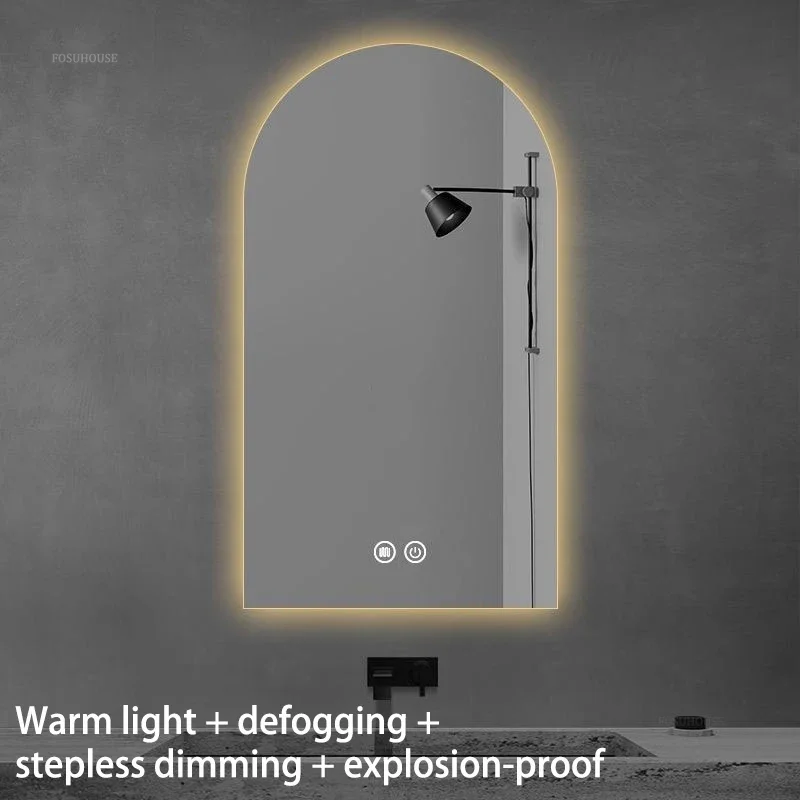 French Glass Bath Mirrors for Toilet Wall-mounted Dressing Touch Screen Mirrors Light Luxury Arched Design Mirrors for Bedroom