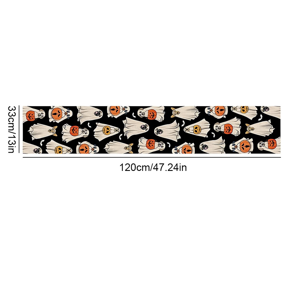 Ghost Dog Table Runner Halloween Spooky Pumpkin Dog Table Runner Jack O Lantern Pumpkin Bat Tablecloth Halloween Decorations