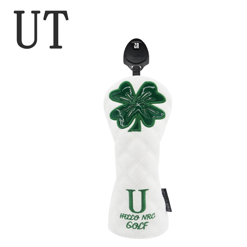 Golf Wood Cover Rhombus Four Leaf Clover Pattern PU Leather Waterproof Protector For Driver Fairway Hybrid Golf Club Head Covers