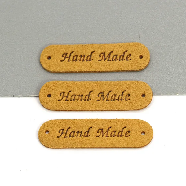 Hand Made Labels 45x13MM Handmade Leather Label For Clothes Sewing Crafts Handmade Tags For Knitting Garment Accessories 20Pcs