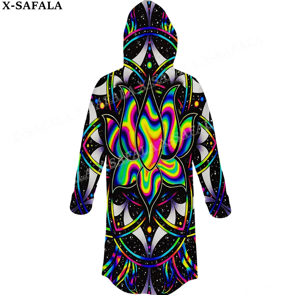 Hippie Psychedelic Colorful Trippy Print Thick Warm Hooded Cloak Men Overcoat Coat Windproof Fleece Cape Robe Hooded Blanket-6