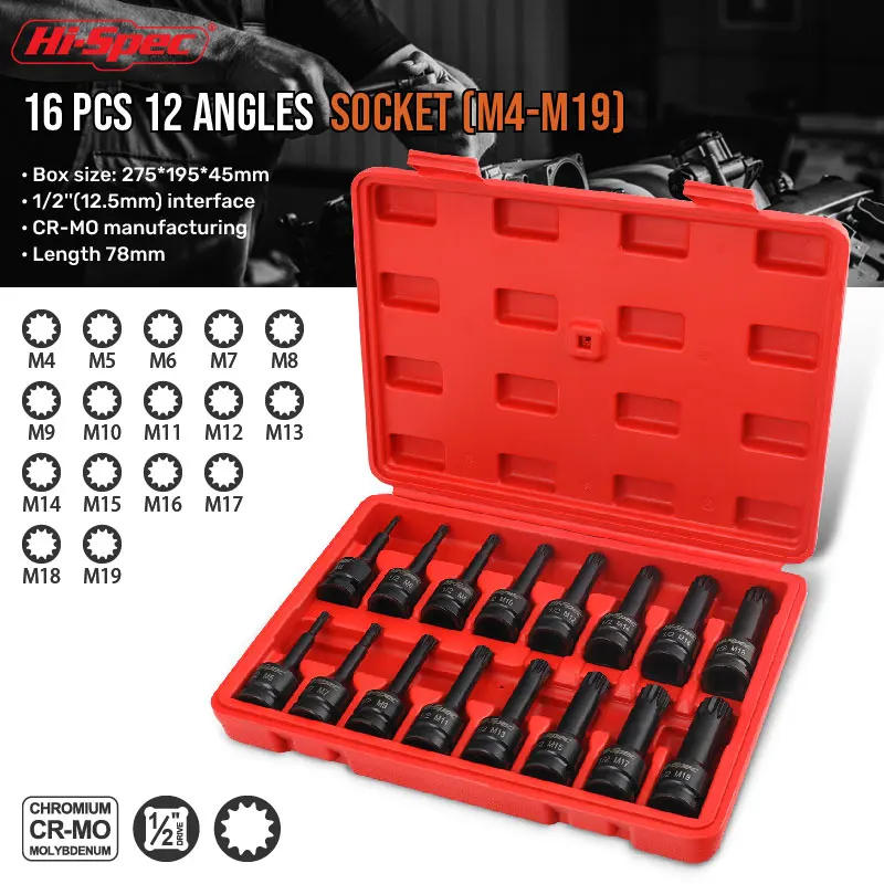 Hi-Spec 16PCS 1/2 Hexagon Socket Extension Socket Set Extra Long Socket Electric Wrench S2 Bit Screwdriver Adapter Torque Wrench