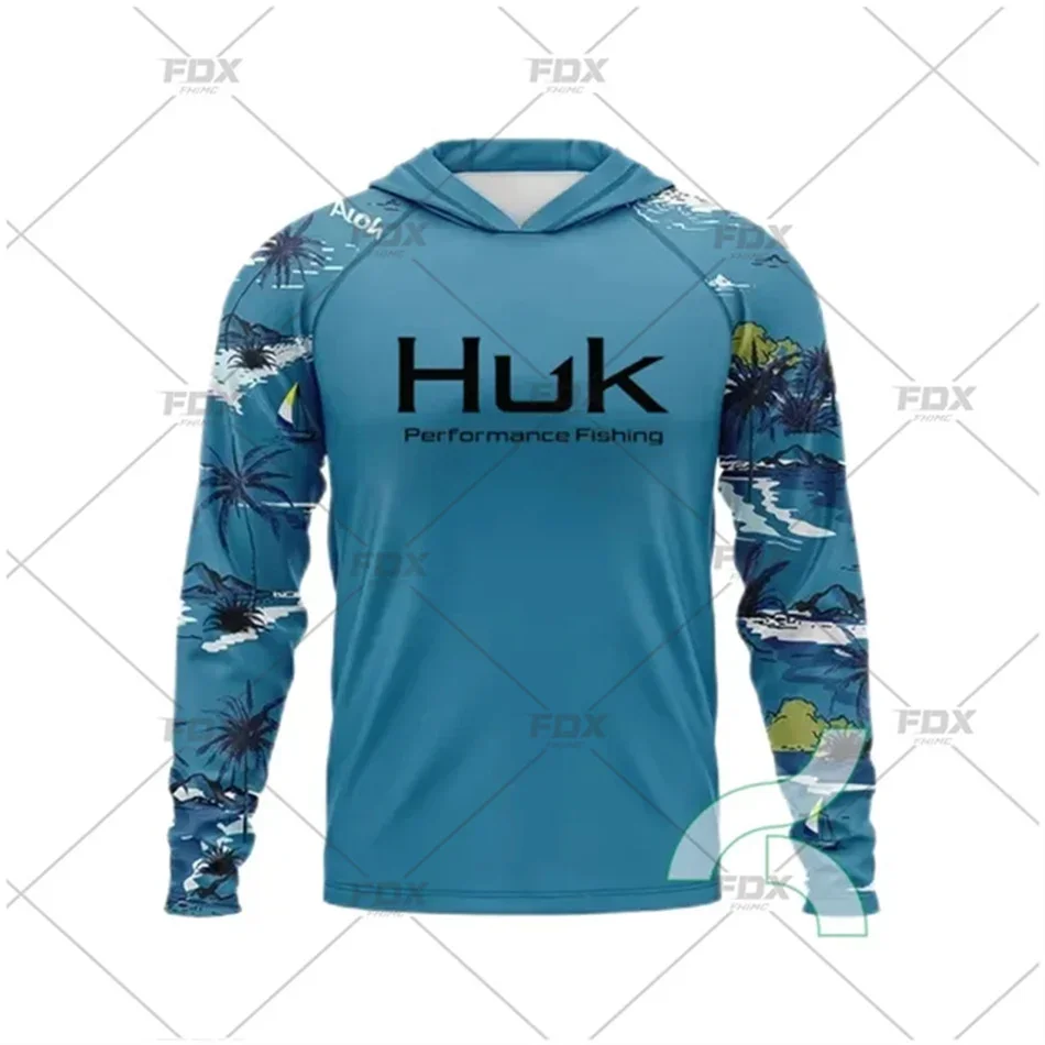 HUK Fishing Shirt Camouflage Hoodie T-shirts Outdoor Sun Protection Fishing Clothes Men Ropa De Pesca Breathable Anti-UV Jerseys