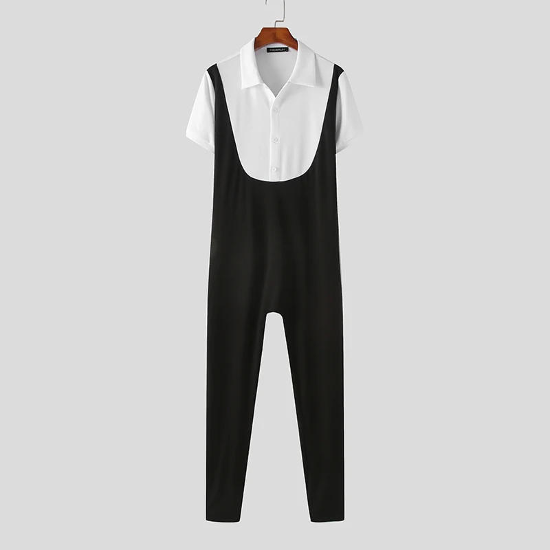 INCERUN 2024 American Style New Men Fashionable Color Contrast Rompers Casual Party Hot Sale Male Short-sleeved Jumpsuits S-5XL