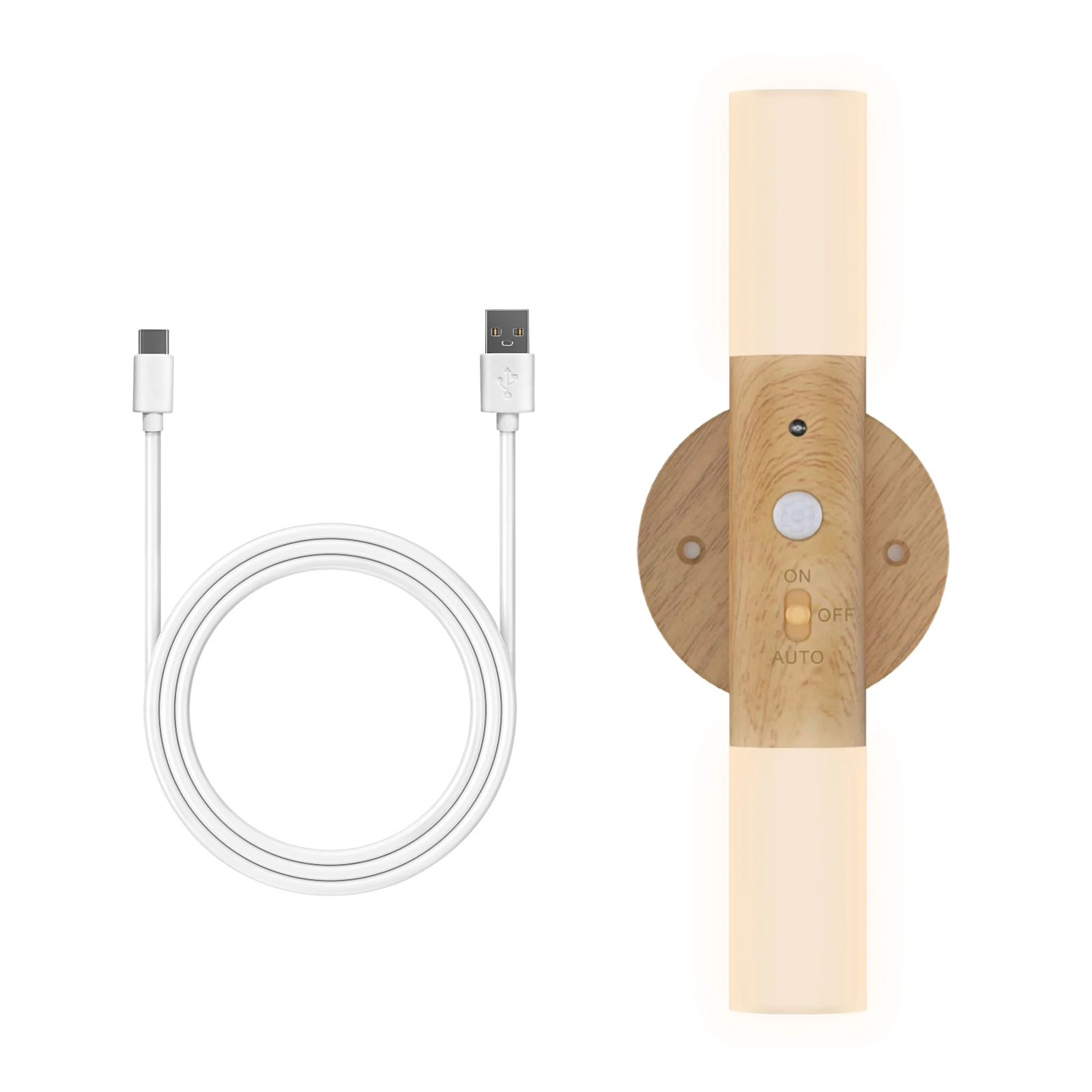 Indoor Wall Light, Pack of 2, USB Rechargeable Wall Night Light, Wood, Indoor with Motion Sensor, Induction, LED Wall Lamp