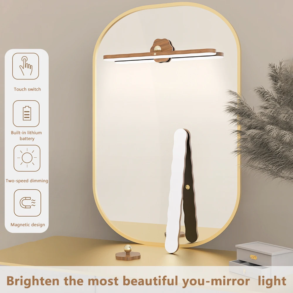 LED Mirror Front Lamp Magnet Adsorption Mirror Screen Vanity Lamp Rotation Wood Color Night Light for Bedroom Makeup