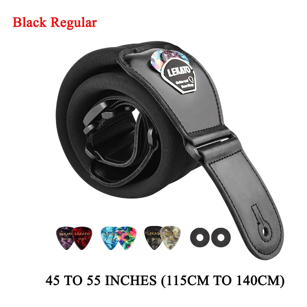 LEKATO LGS-2 Bass Guitar Strap Adjustable Cowhide Acoustic Electric Bass Strap Guitar Belt Guitar parts Accessories with 6 Pick
