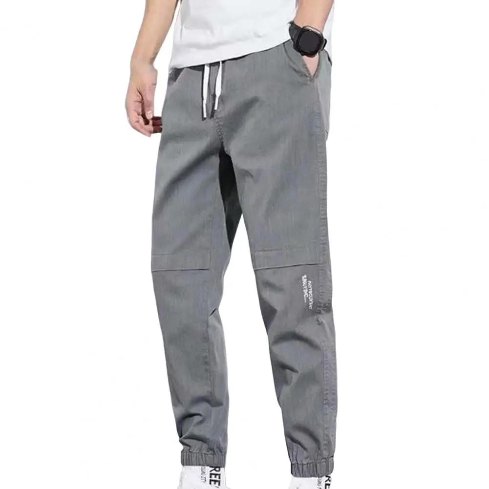 Men Cargo Pants Solid ColorCasual Loose Joggers Pants Spring Summer Drawstring Ankle Tied Cropped Pants For Daily Wear