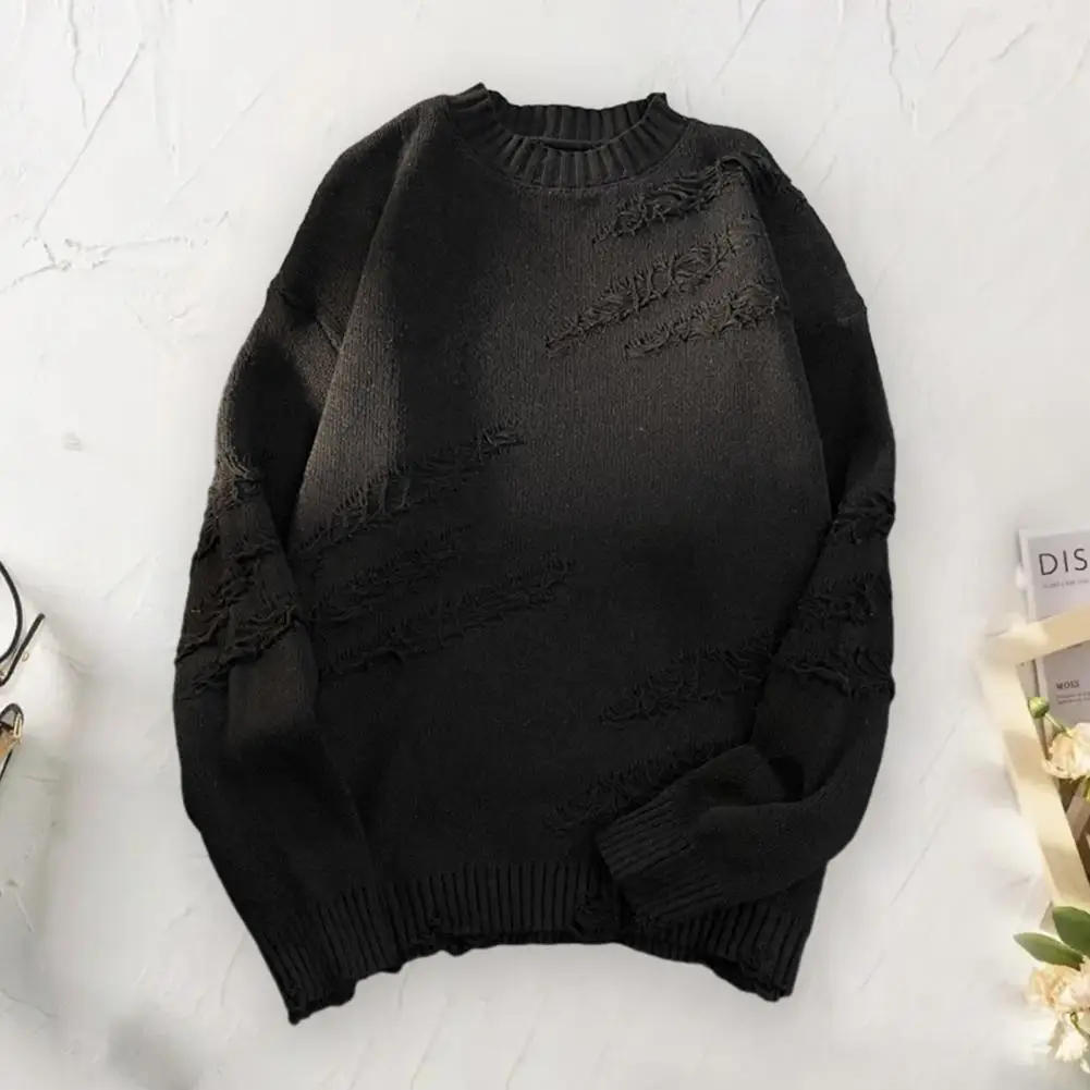 Men Retro Sweater Holes Fringed Thick Long Sleeve Loose Pullover Hip Hop Warm Knitted Sweater For Men And Women Streetwear