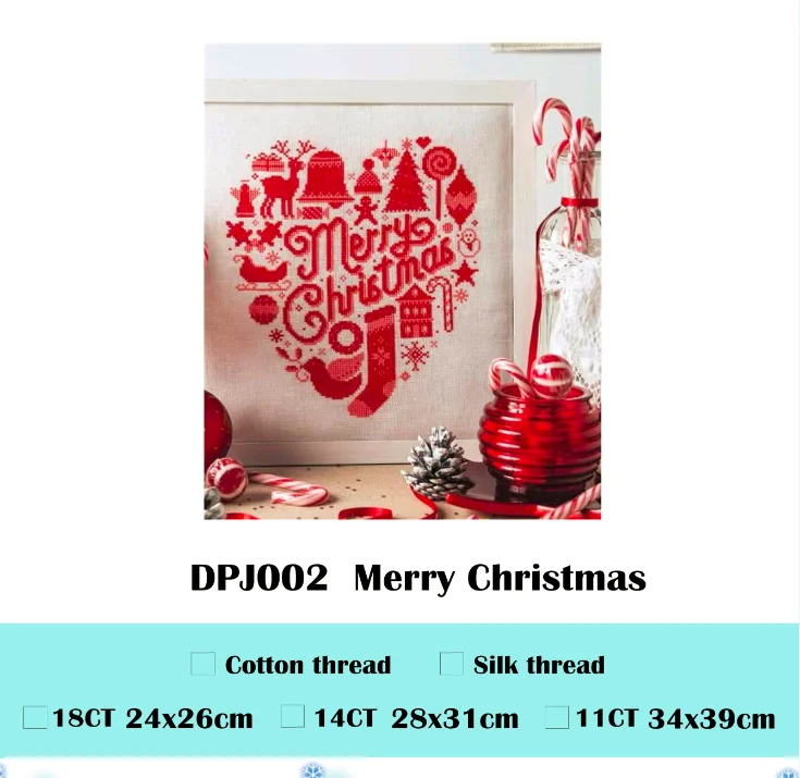 Merry Christmas cross stitch package 18ct 14ct unprint canvas DMC cotton thread embroidery DIY handmade needlework