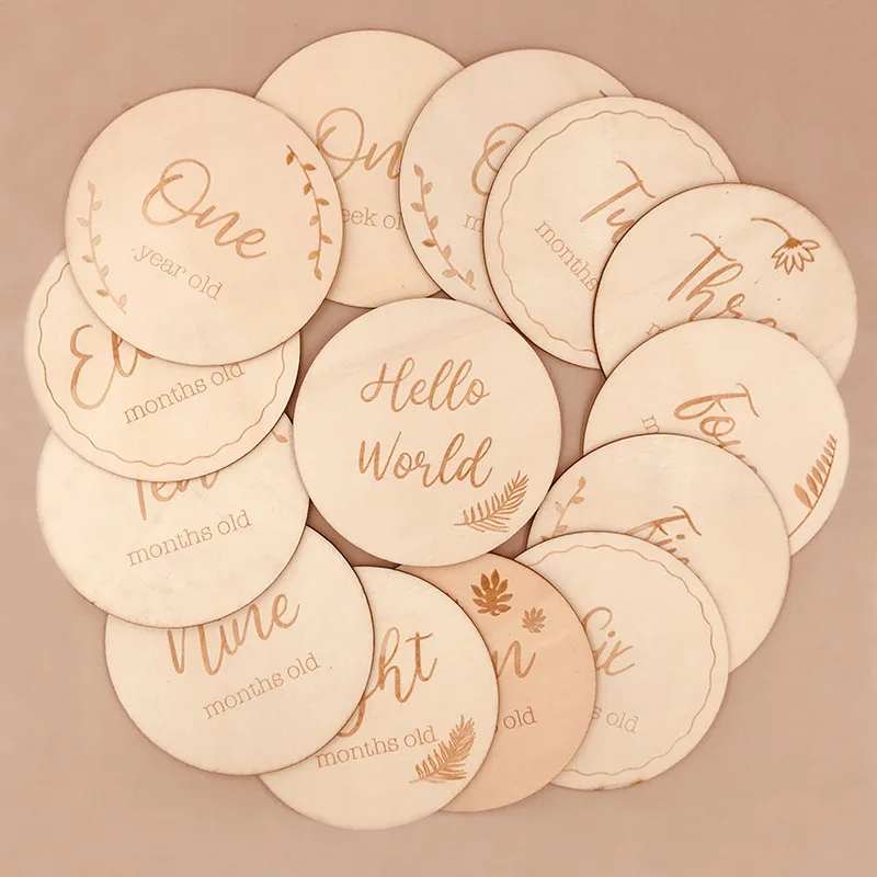 Newborn Photography Props Baby Birth Accessories for New Born Photo Handmade Wooden Baby Milestone Cards1-12 Month Baby Stuff