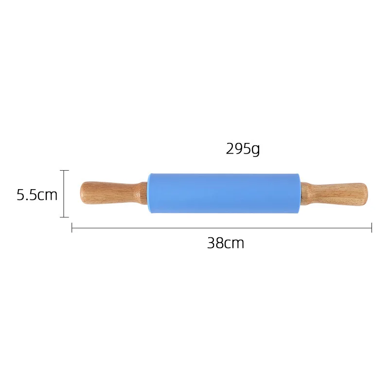Non-Stick Silicone Rolling Pin Wooden Handle Pastry Dough Flour Roller Kitchen Cooking Baking Tool For Pasta Cookie Dough