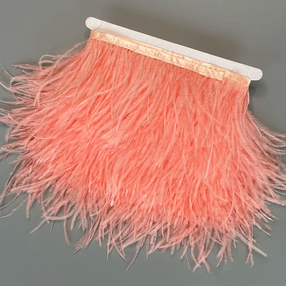 Ostrich Feathers Trim 13-18CM 5-7inch Feather Plumes Ribbon Selvage For DIY Wedding Dress Decoration Crafts Accessories