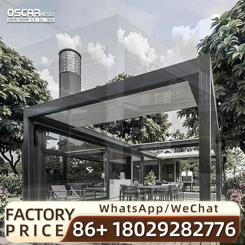 Outdoor Motorized Pavilion with Sliding Doors and Blinds Prefab for Homes Model IM18 Ideal for Backyards and Gardens in US pergo